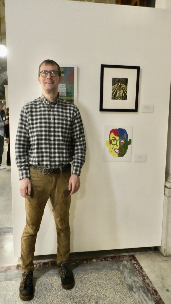 This is me with my drawing at the annual Momentum art exhibit in November 2021.