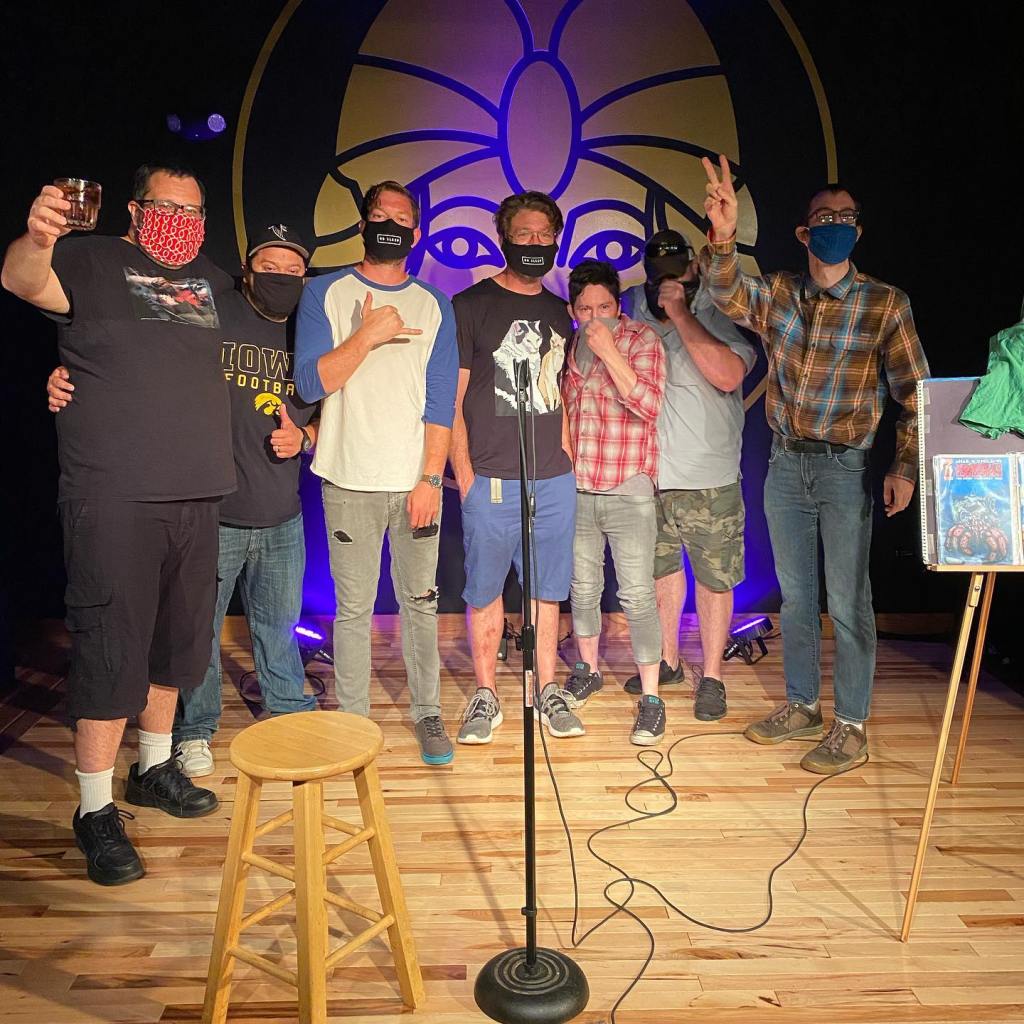 This is me with my fellow comedians at Shark Attack, to promote Marc Van Ahnan’s comic book series, in August 2020.