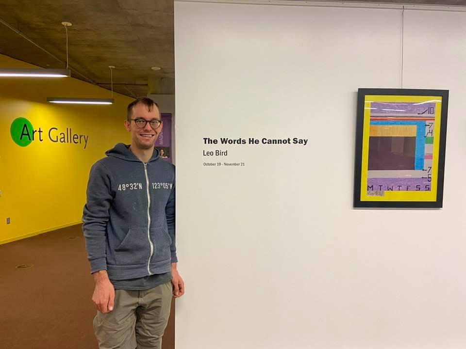This is me at my exhibit at the Creston train station through Creston Arts in March 2024.