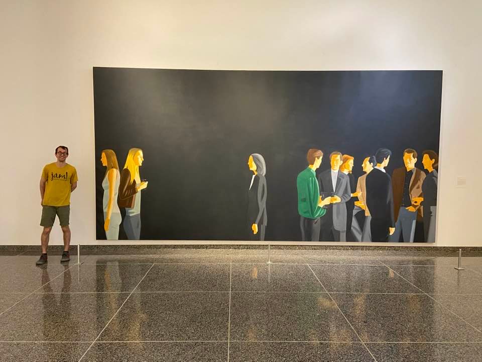 This is me with Alex Katz’s Ada’s Garden at the Des Moines Art Center. Alex Katz is the artist people say I draw like.