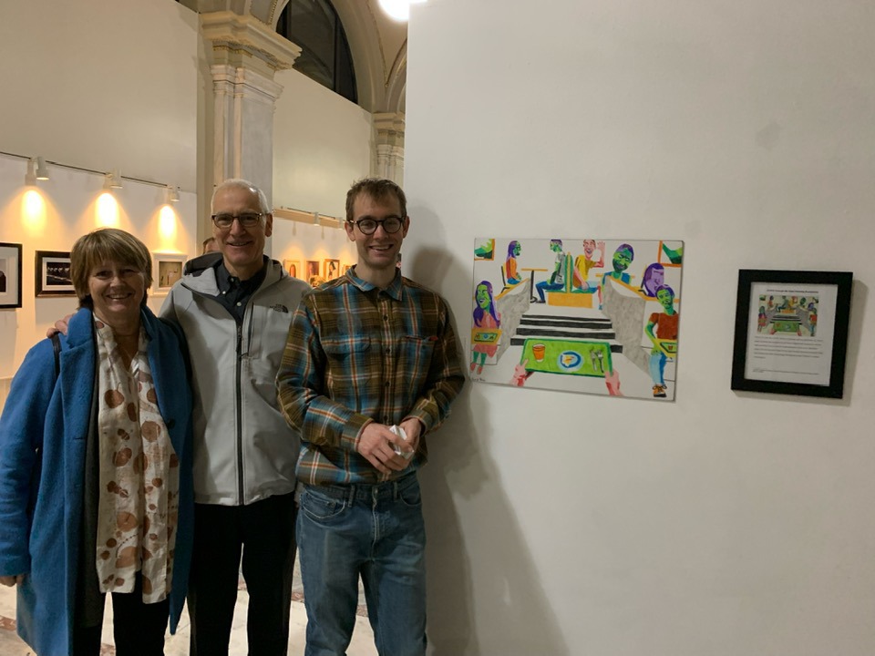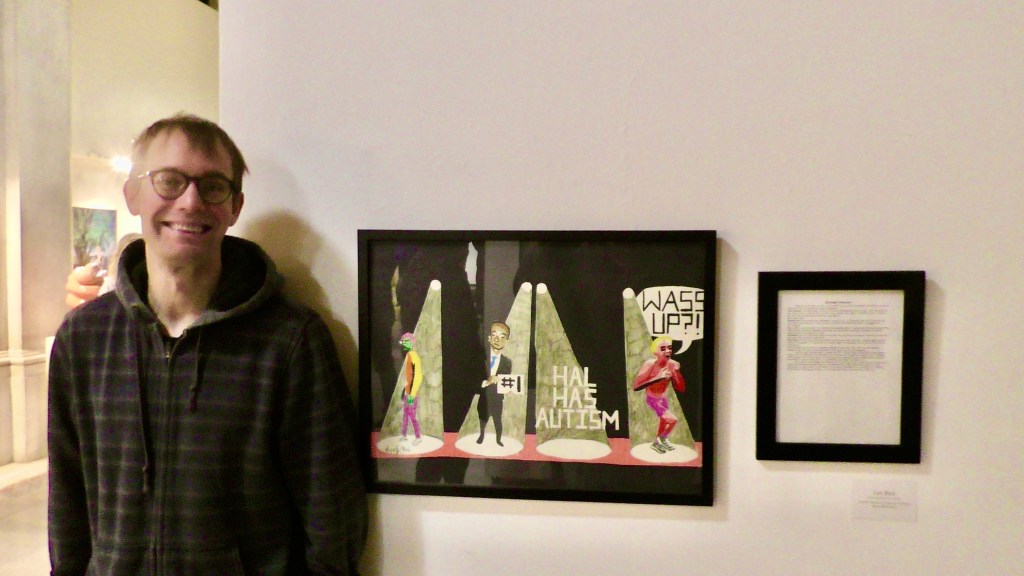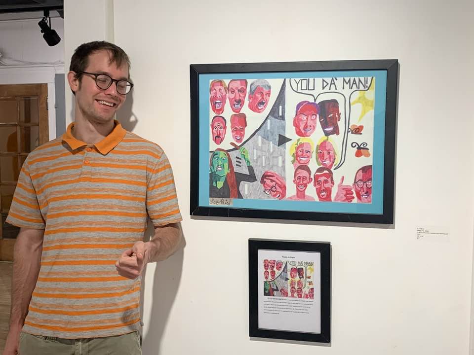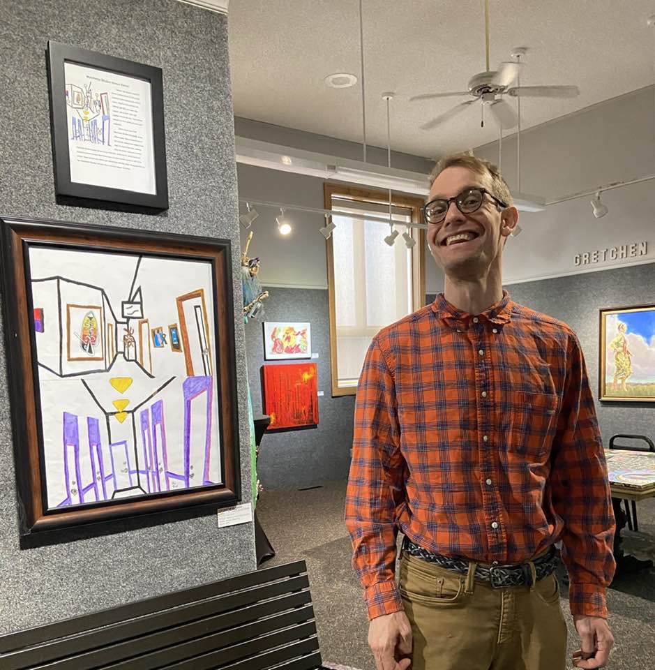 This is me with my drawing at the annual Momentum art exhibit in November 2021.