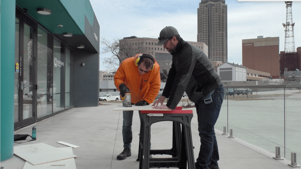 This is me carving a wood figure with Julia Franklin’s husband Gavin at Mainframe Studio’s porch in Des Moines, Iowa in March 2023.