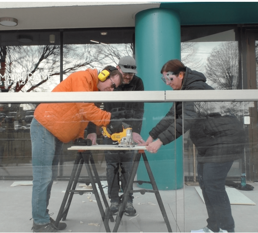 This is me carving a wood figure with Julia Franklin and her husband Gavin at Mainframe Studio’s porch in Des Moines, Iowa in March 2023.