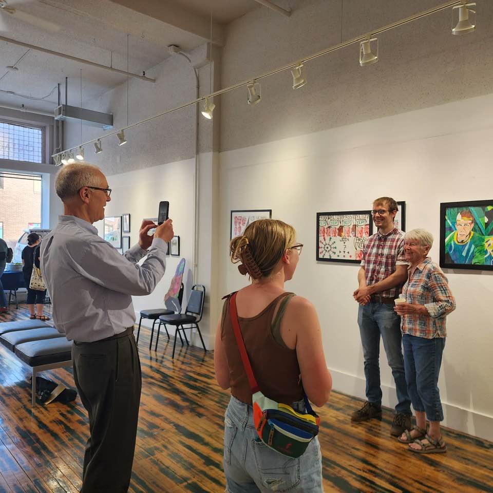 This is me with my dad, cousin, and grandma at my exhibit at the Octagon in Ames, Iowa in May 2023.