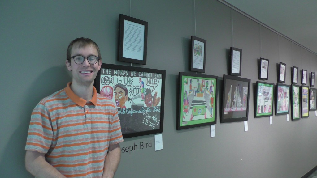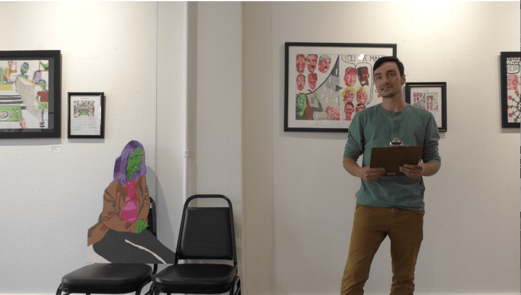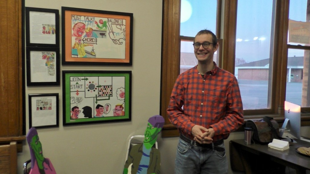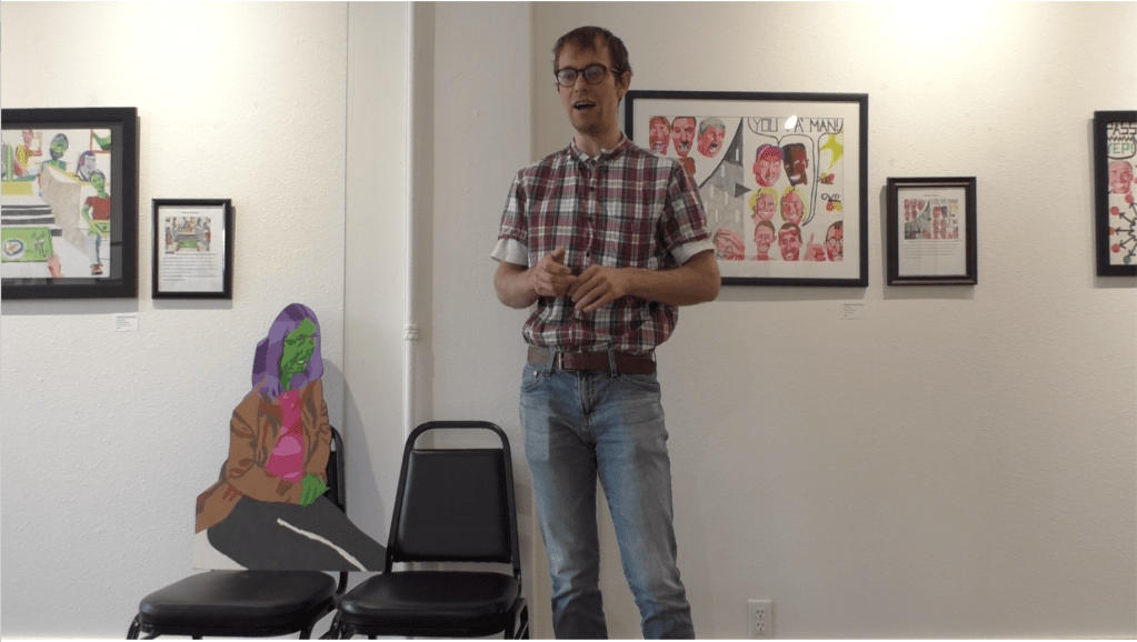 This is me explain my drawing at my exhibit at the Octagon in Ames, Iowa in May 2023.