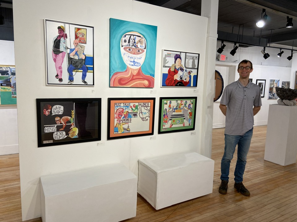 This is me with my art at the 32nd Anniversary Show at the Carnegie Art Center in Alliance, Nebraska on May 17, 2025.
