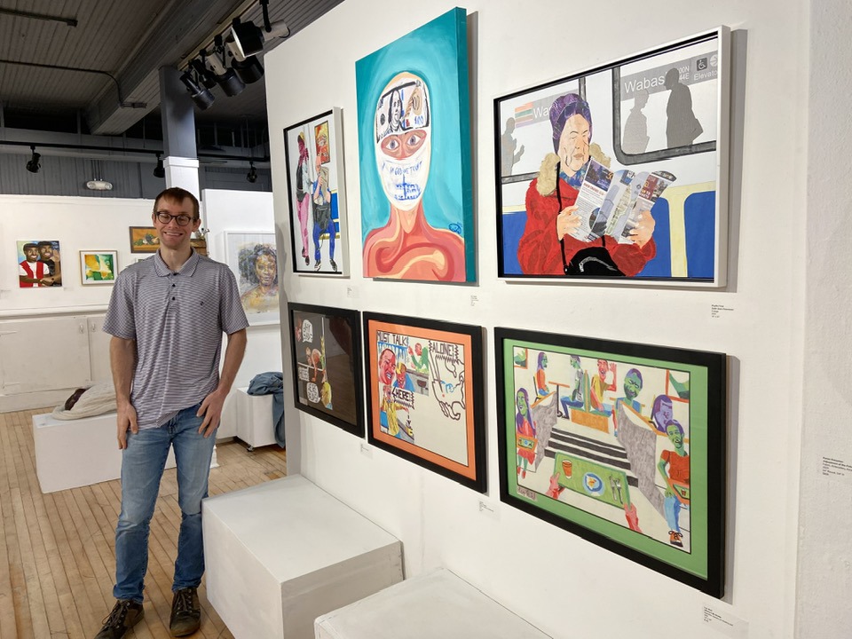 This is me with my art at the Oak Park Art League.