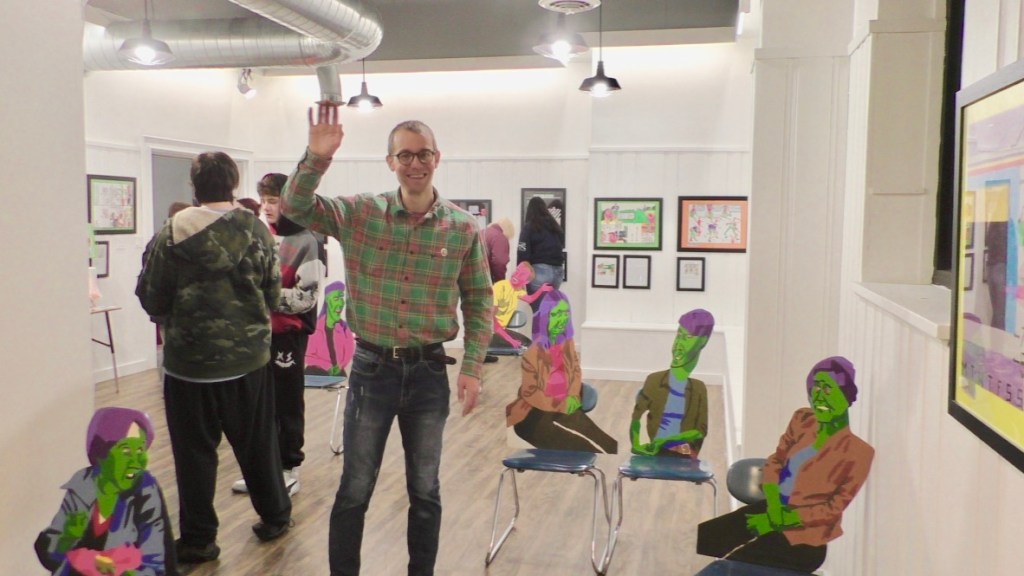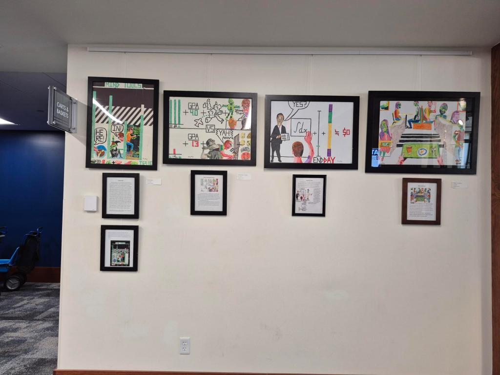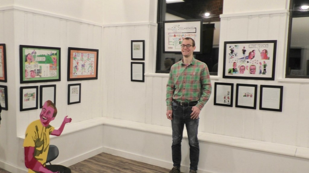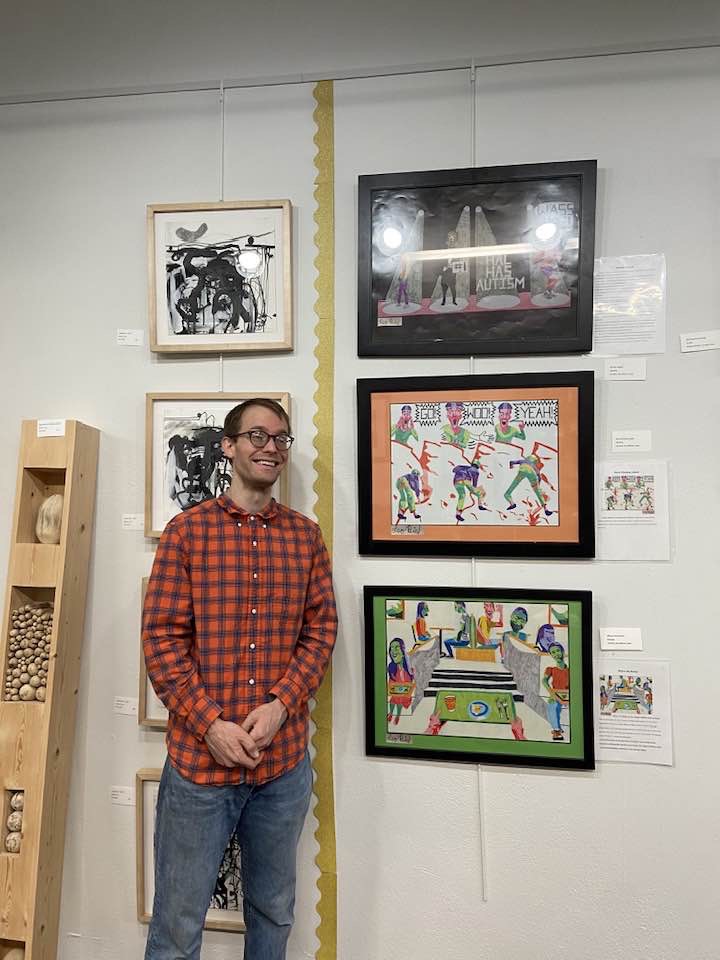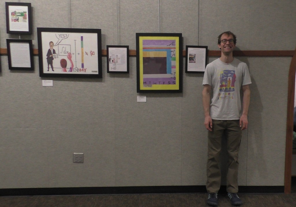 This is me with my drawings at the May 2024 Corning Art Center.