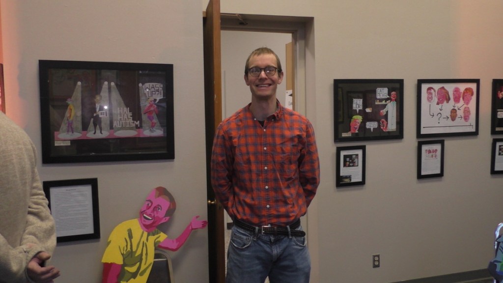This is me at my exhibit at the Oskaloosa Art Center in January and February 2024.