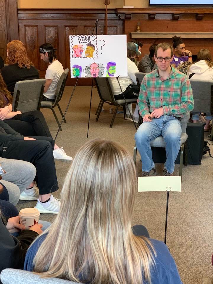 This is me giving a Human Book Talk at Waldorf University in Forest City, Iowa in March 2024.