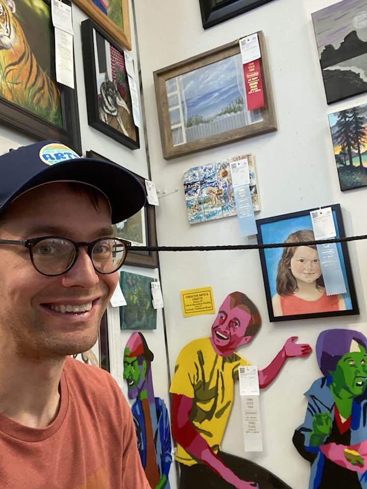 This is me with my wood figures at the 2024 Iowa State Fair.