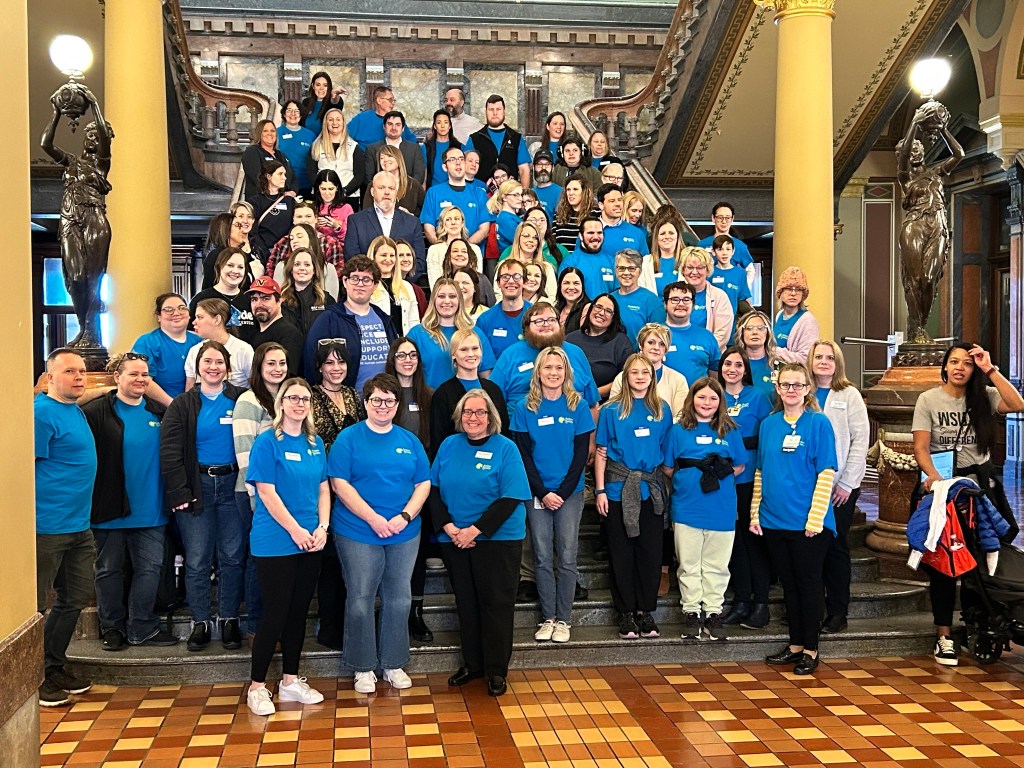This a group photo at Autism Day on the Hill at the Capitol in January 2025.