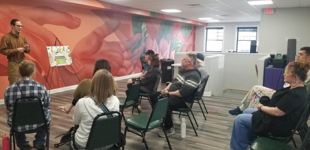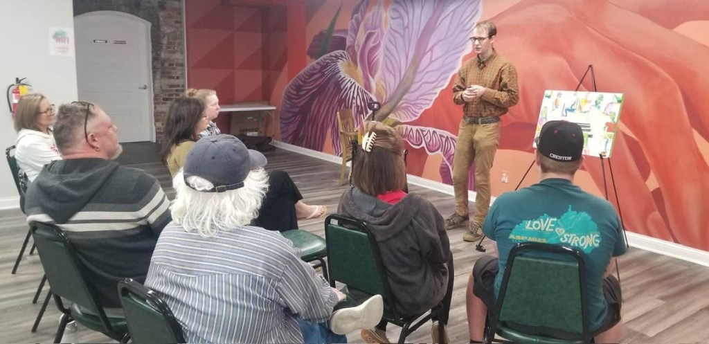 This is me giving a speech on how to apply for an art exhibit on April 12, 2025 in Creston, Iowa.