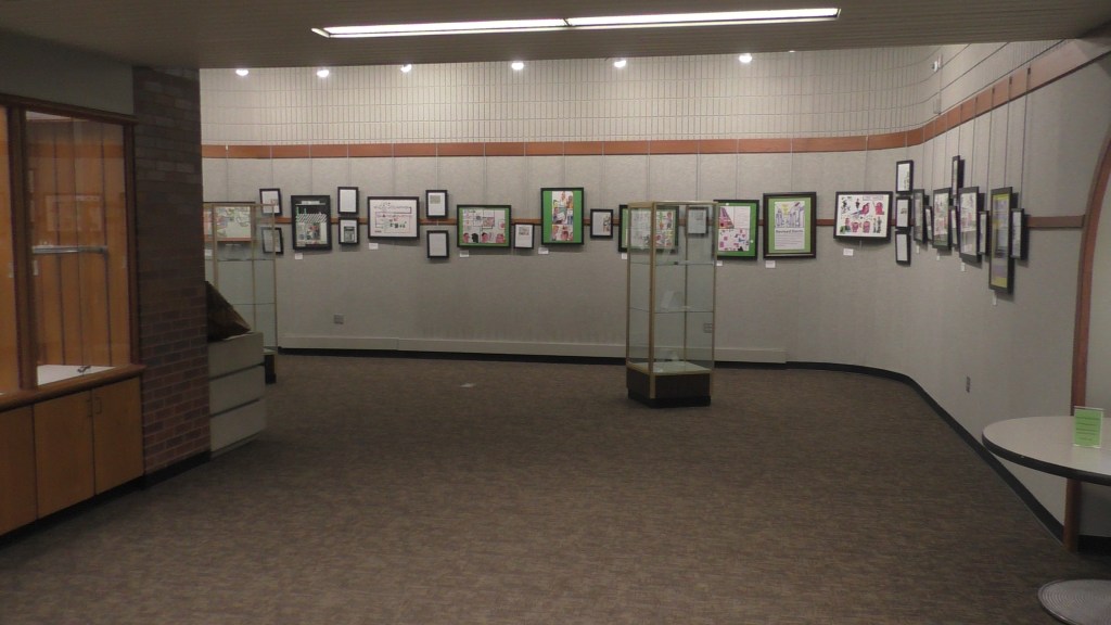 This is my exhibit at Janesville, Wisconsin’s Hedberg Library.